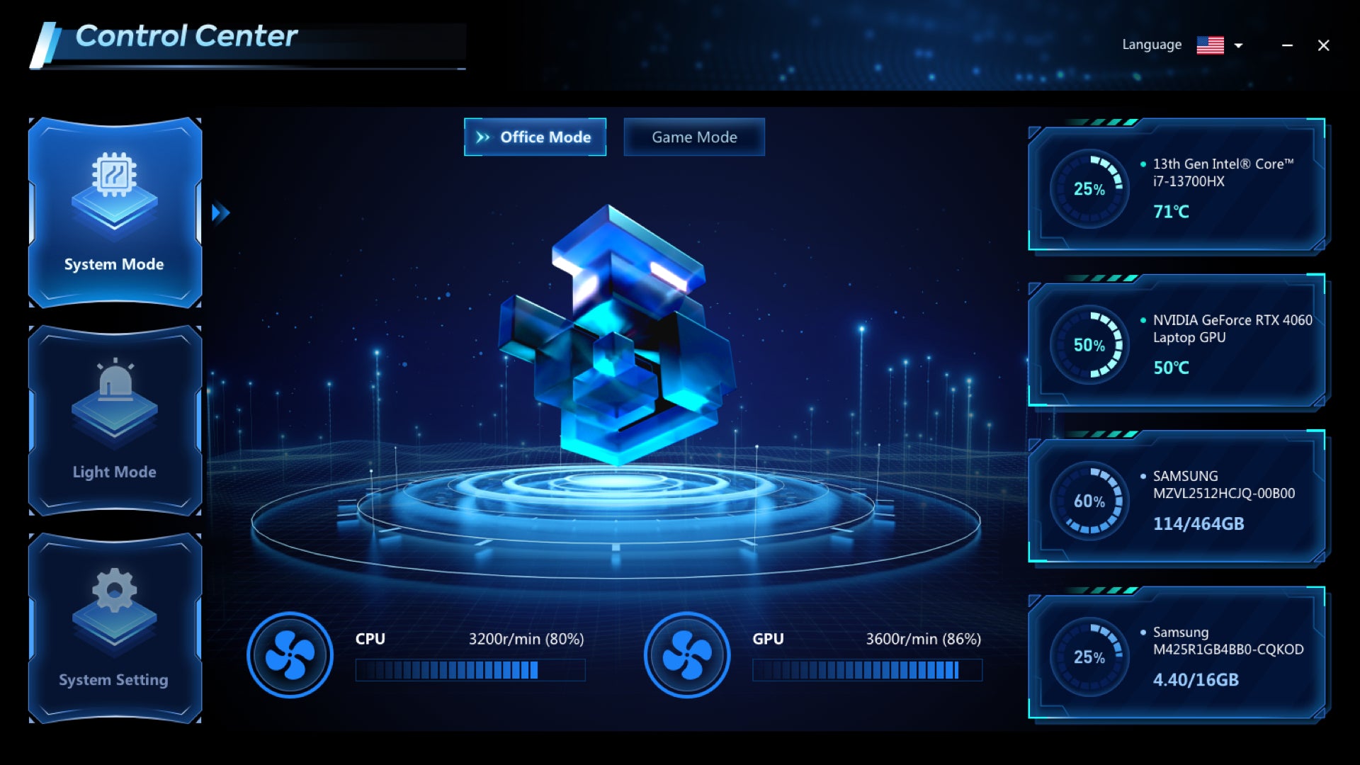 Supports one-click mode switching via software and supports hardware status monitoring.