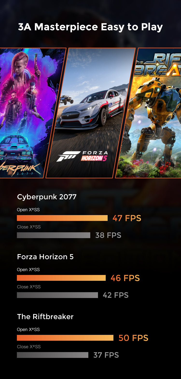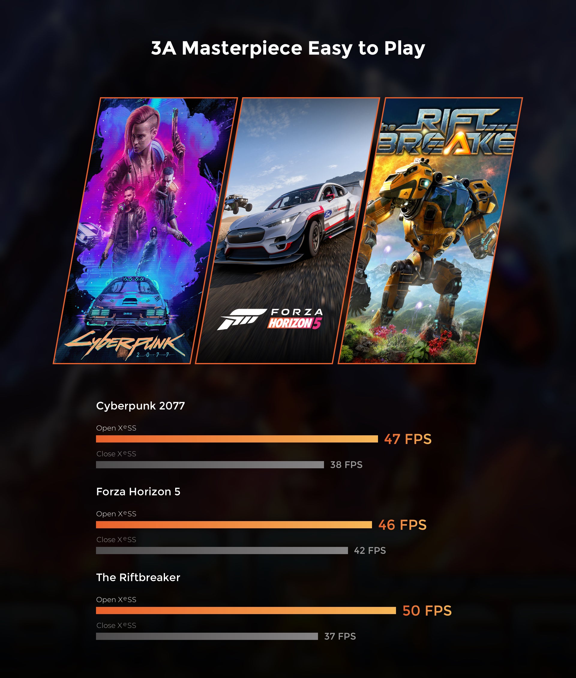 Enhancing the gaming experience at 1080P resolution by upgrading the resolution to 4K display through AI technology, balancing the 4K visual quality with 1080P frame rate, realizing better image quality and higher gaming performance.