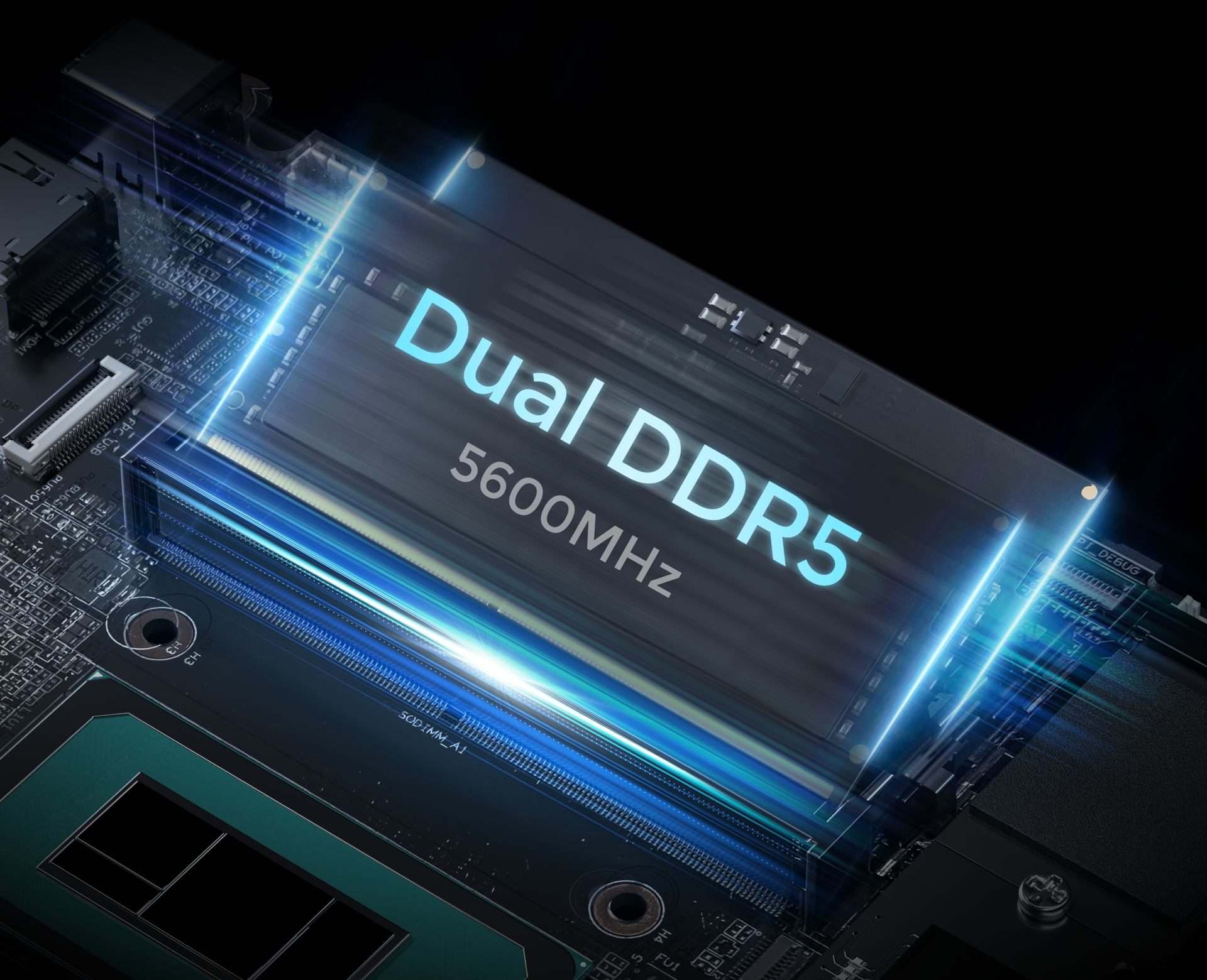 DDR5 Dual channels (Sodimm Slots, up to 5600Mhz, Max 96GB)