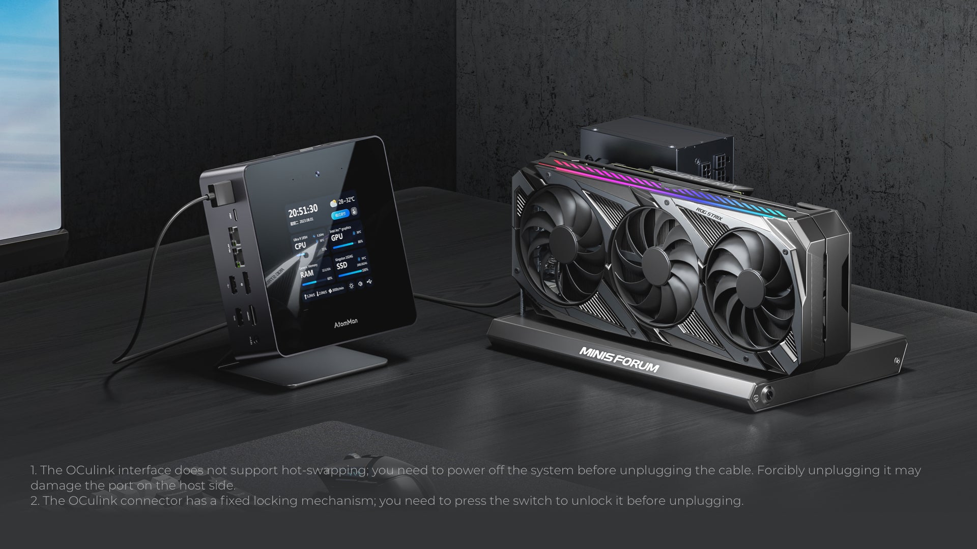 We do not recommend hot-plugging, we recommend that you plug and unplug the Oculink interface after the device has been switched off or powered down.