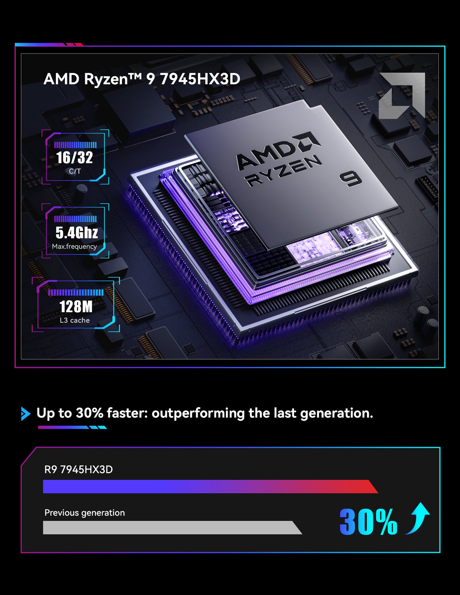 - AMD Ryzen 9 7945HX3D,16C/32T