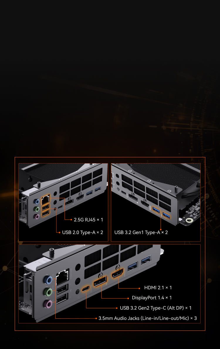 - Dual M.2 2280 PCle4.0×4 SSD Slots