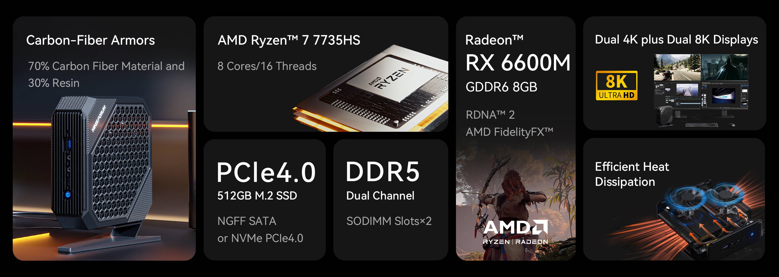 - AMD Ryzen™ 9 6900HX/ Ryzen™ 7 7840HSRadeon™ RX 6600M