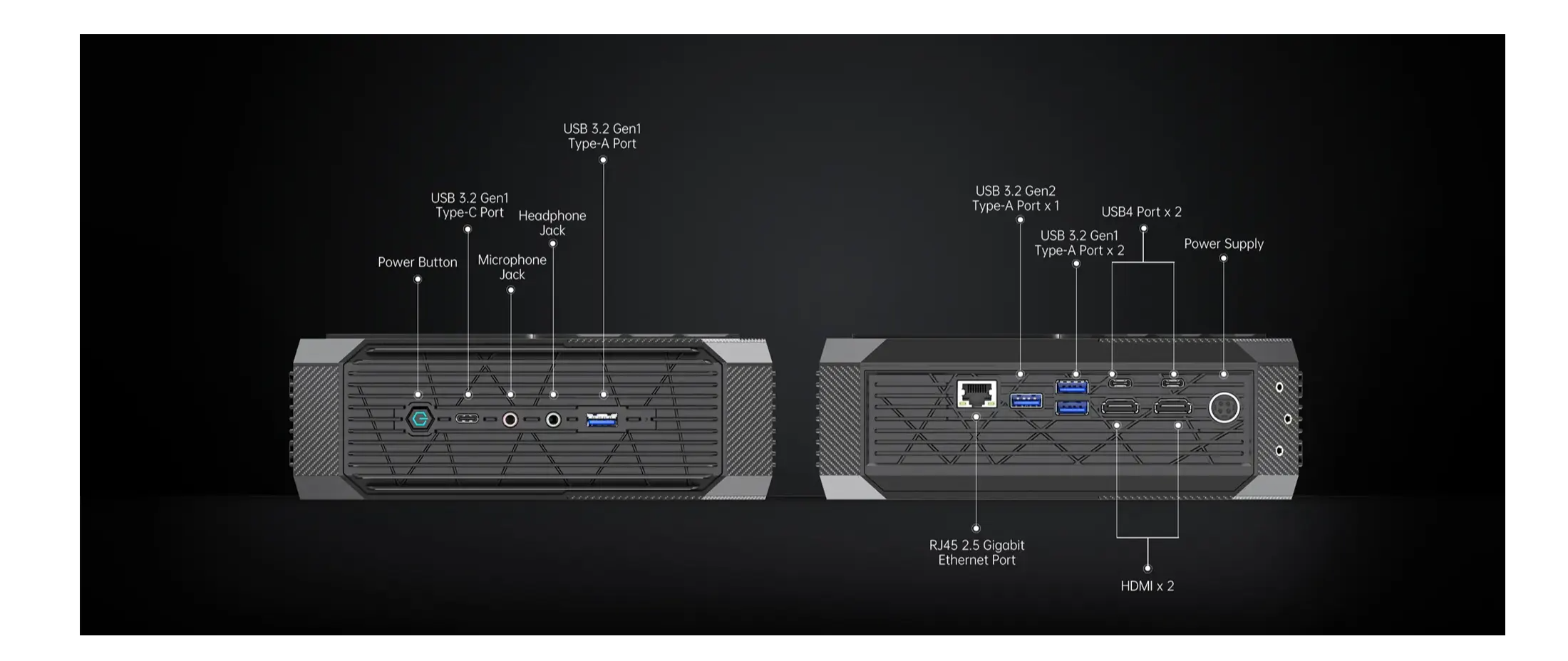 also features an RJ45 2.5 Gigabit Ethernet port, a headphone jack, and a microphone jack.