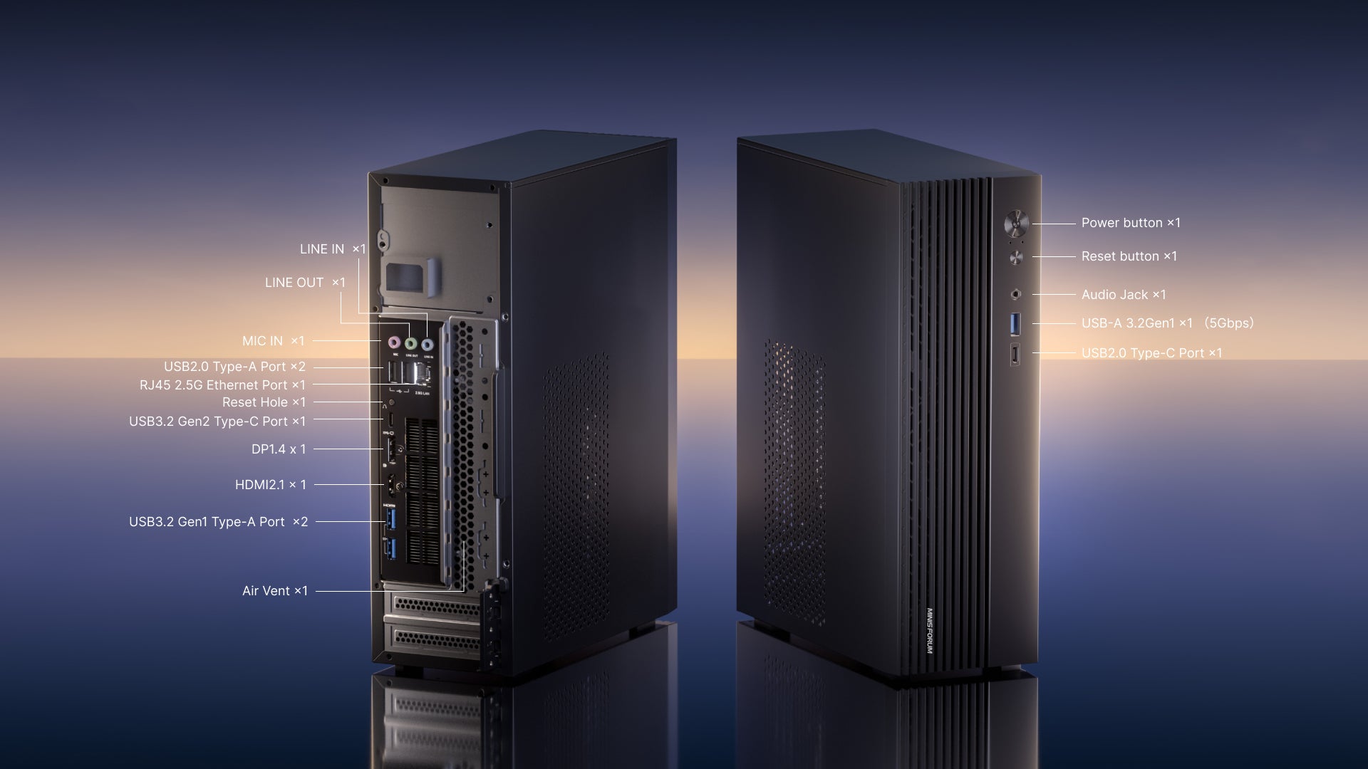 The compact 7L chassis features a high-speed CPU cooling fan, effectively lowering the CPU operating temperature to achieve optimal cooling performance and energy efficiency.
