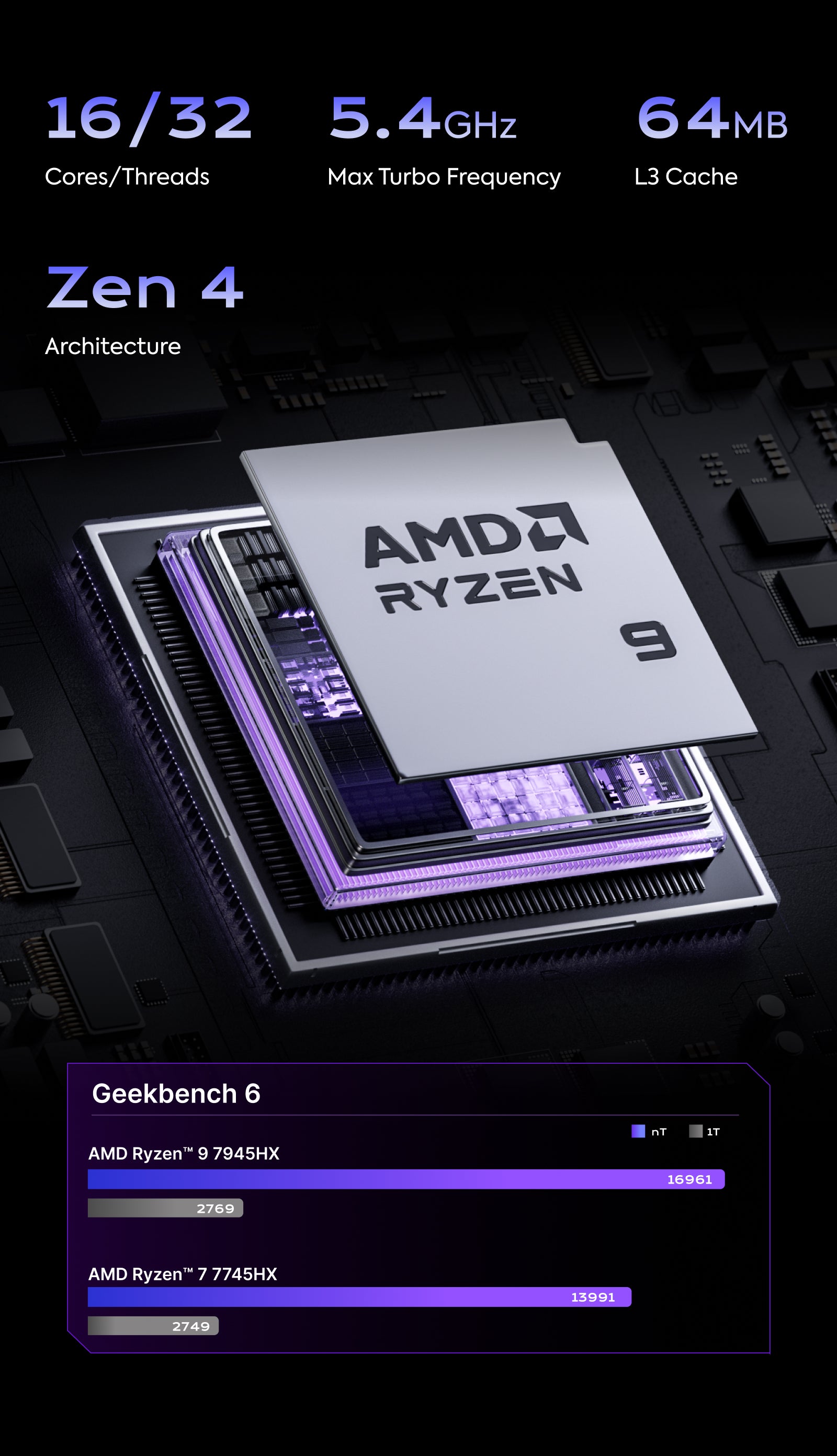 - AMD Ryzen™ 9 7945HX (16 cores/32 threads)