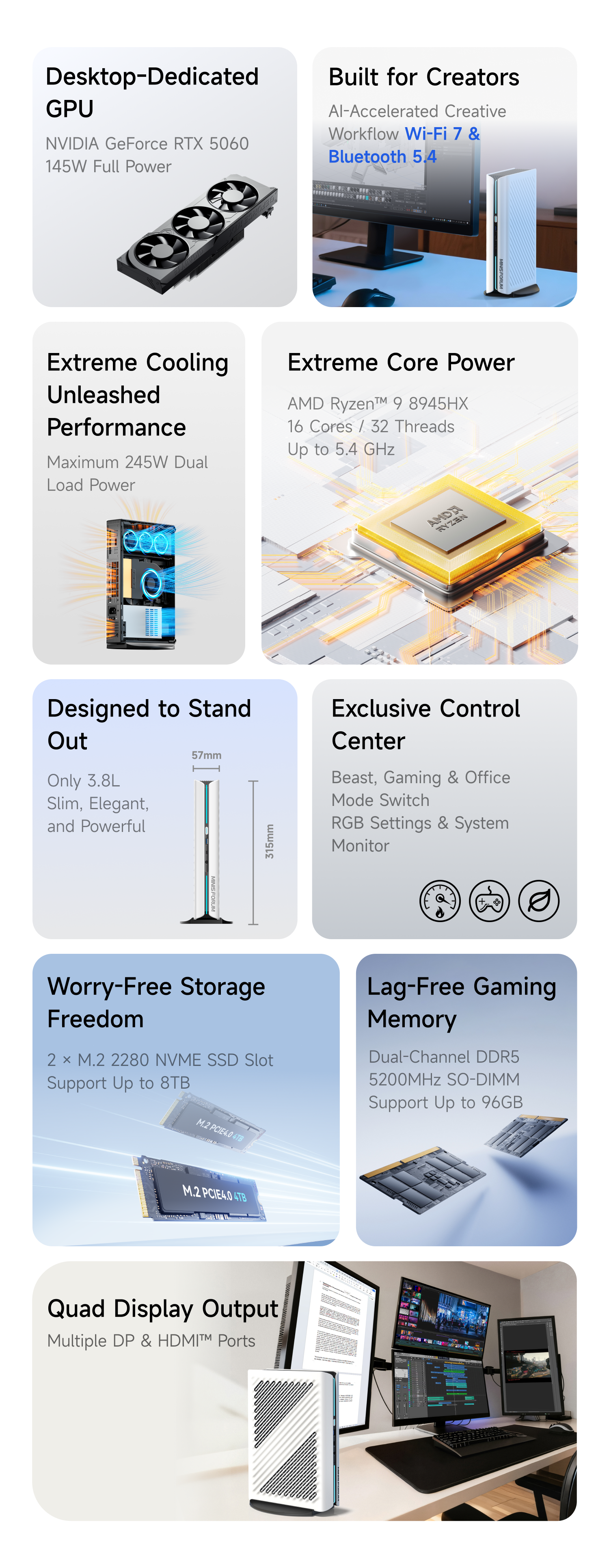- M.2 2280 PCIe4.0 SSD×2 (Total Up To 8TB)