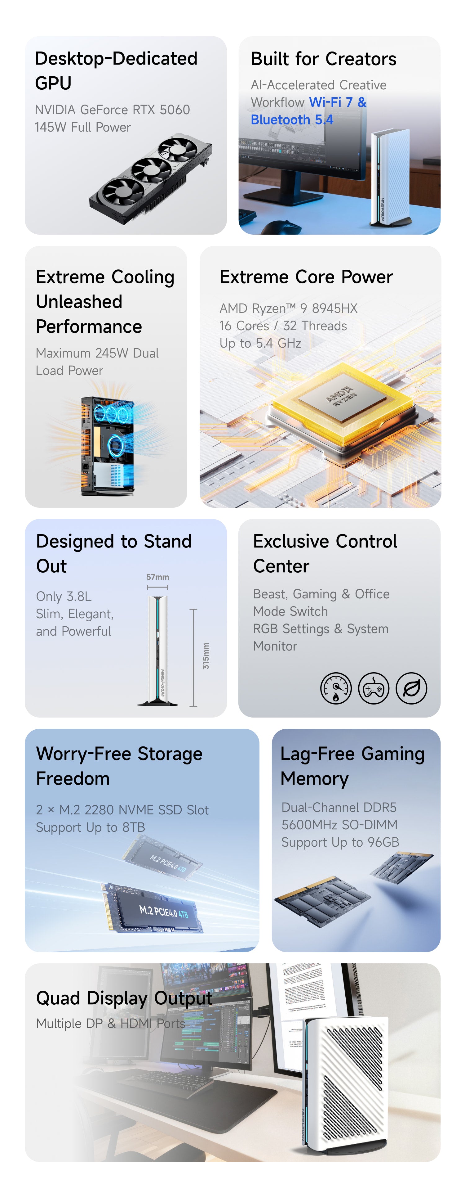 The GPU sustains 145W while the CPU can push up to 100W, delivering a brutal total of 245W of performance that rivals high-end gaming laptops.