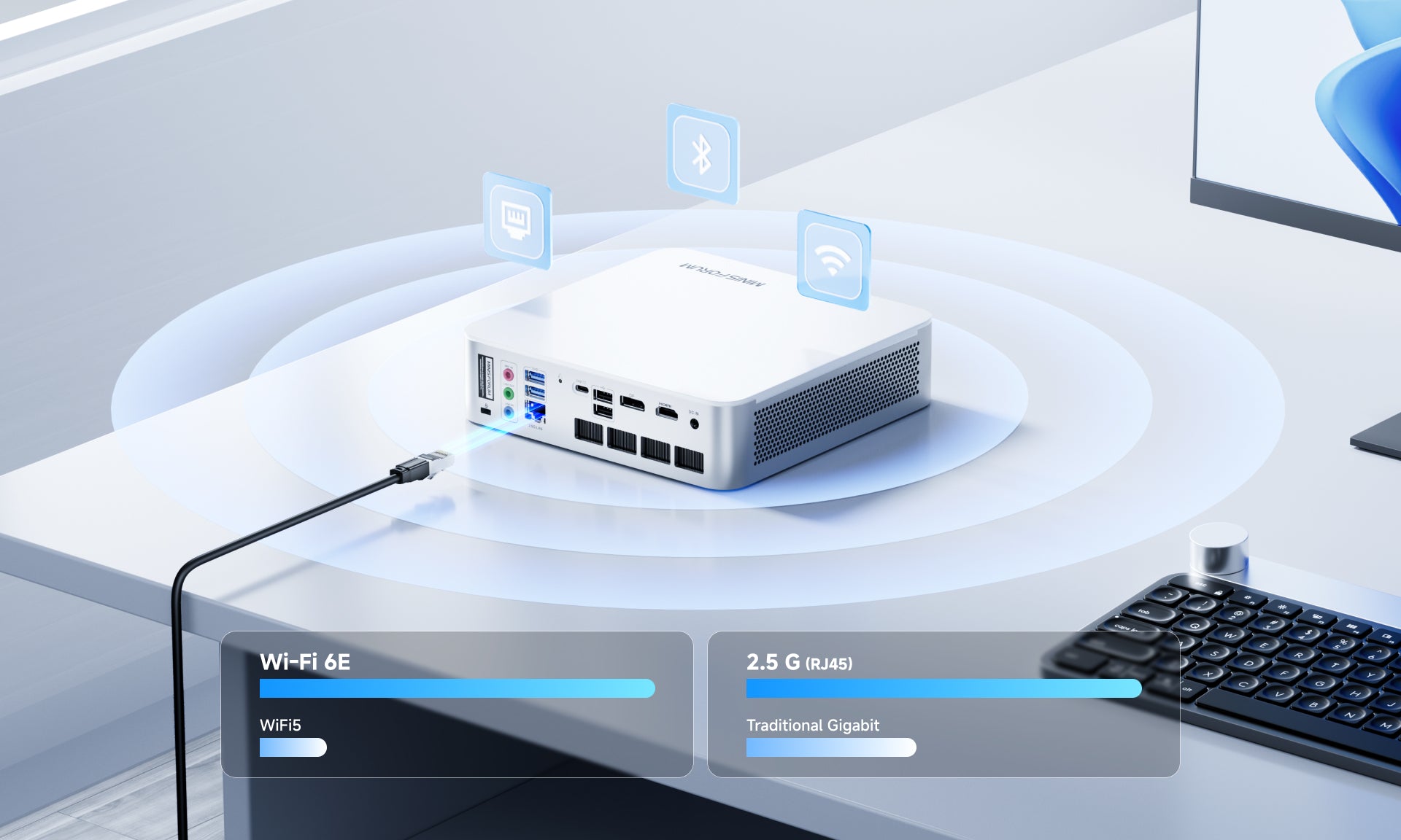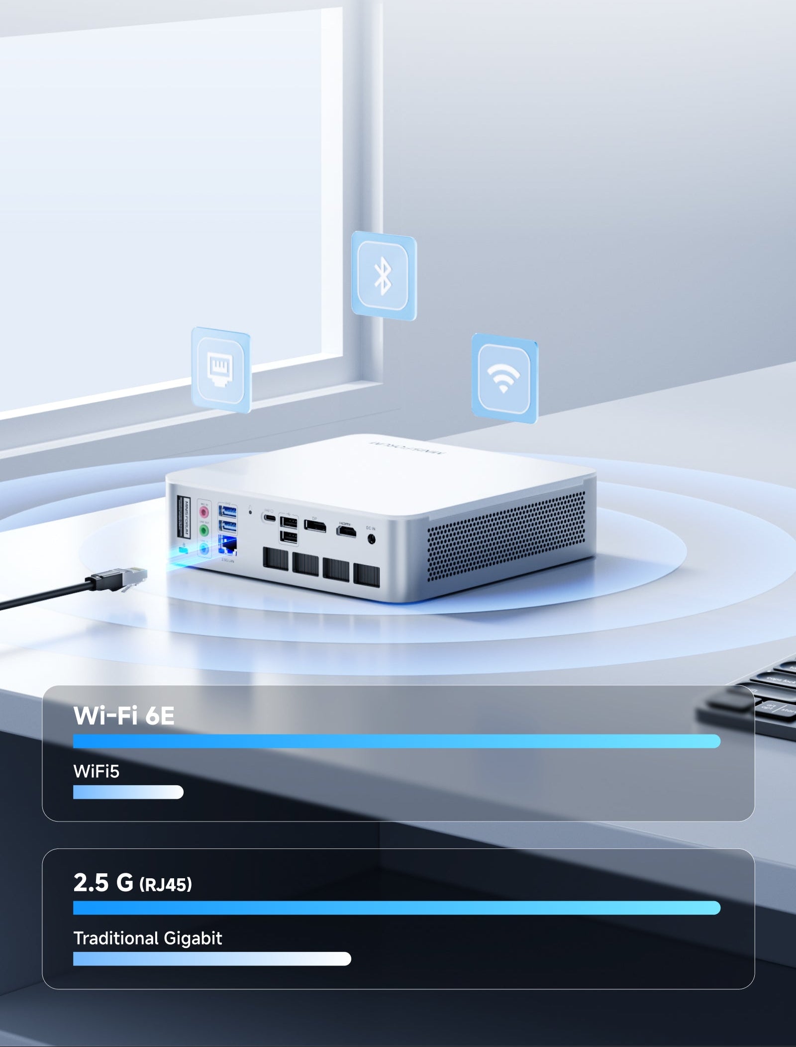 The combination of Wi-Fi 6E, Bluetooth 5.2 and 2.5GbE RJ45 delivers a robust high-speed network.