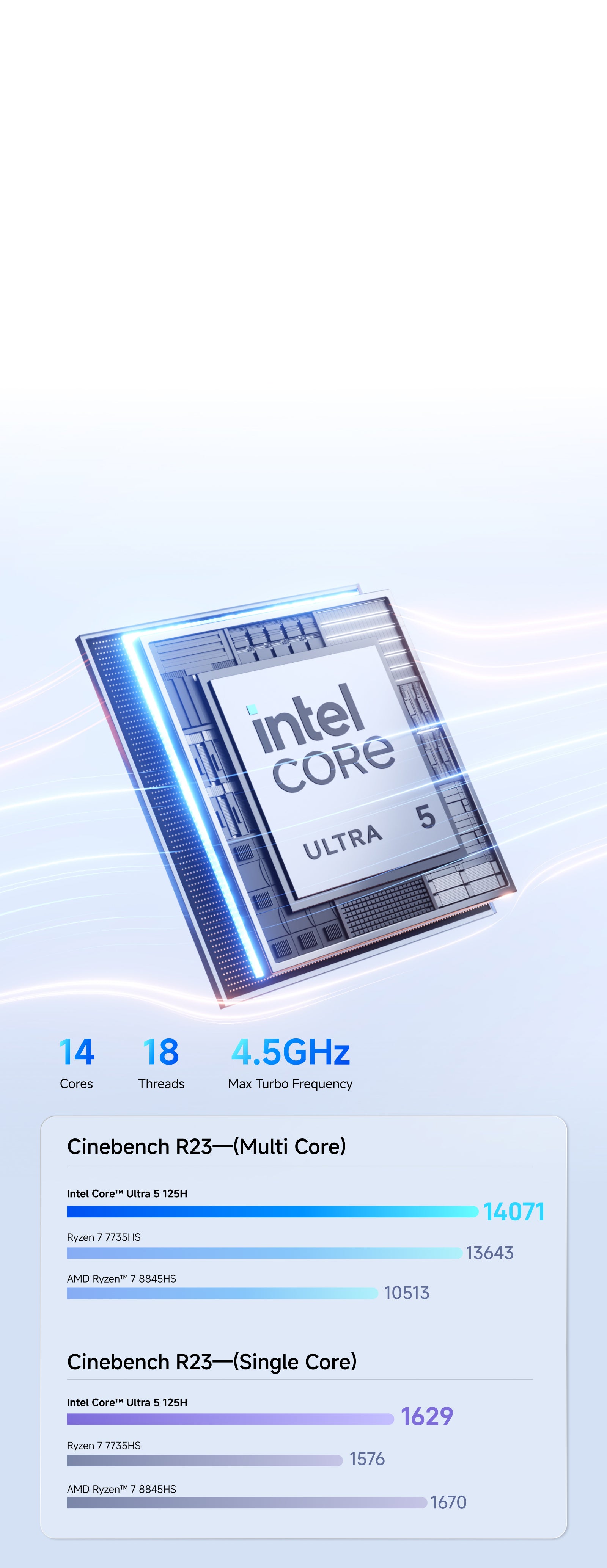 - Intel® Core™ Ultra 5 Processor 125H,14C/18T