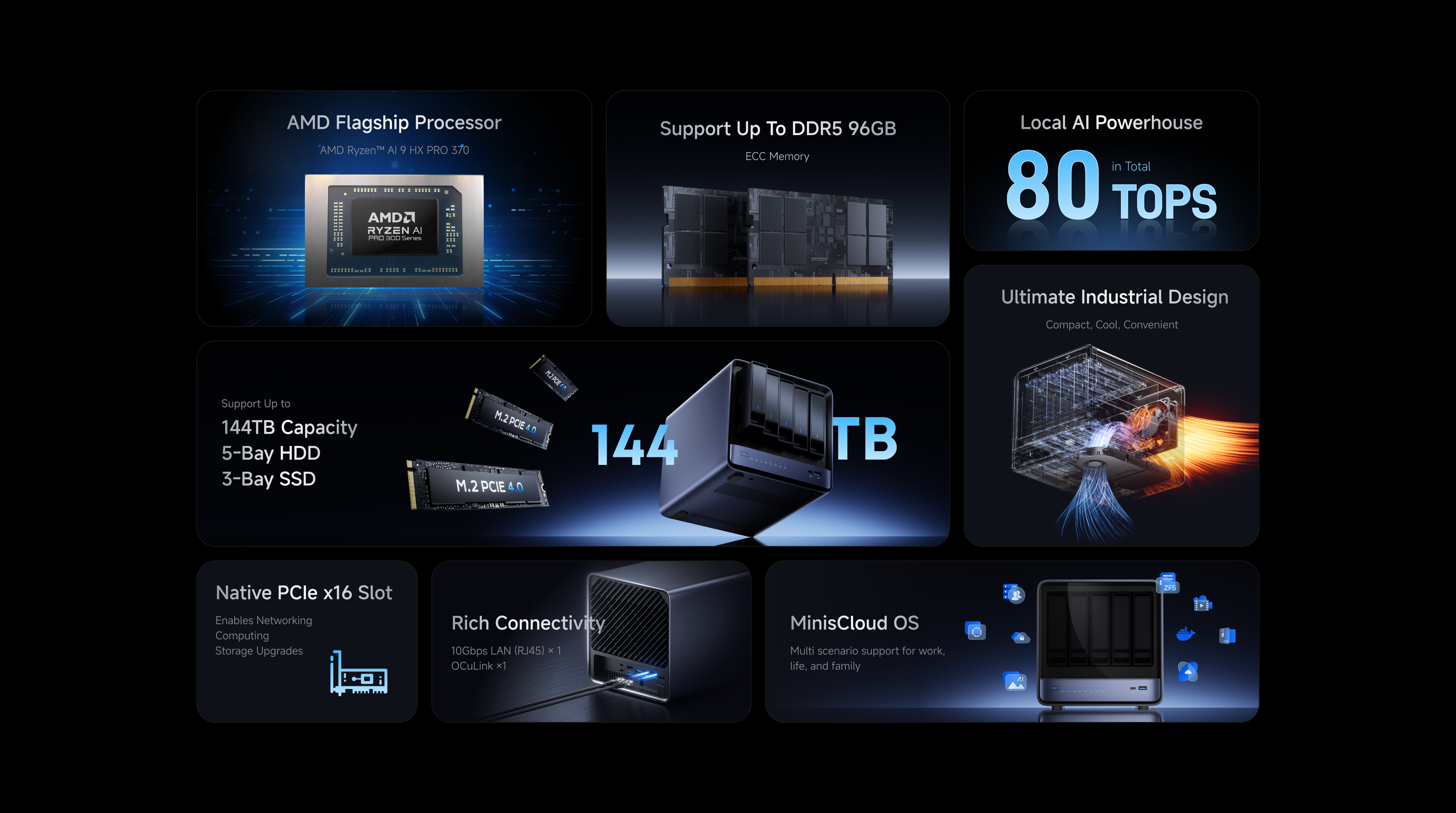 - Maximum 96GB DDR5 ECC memory (N5 Pro only)