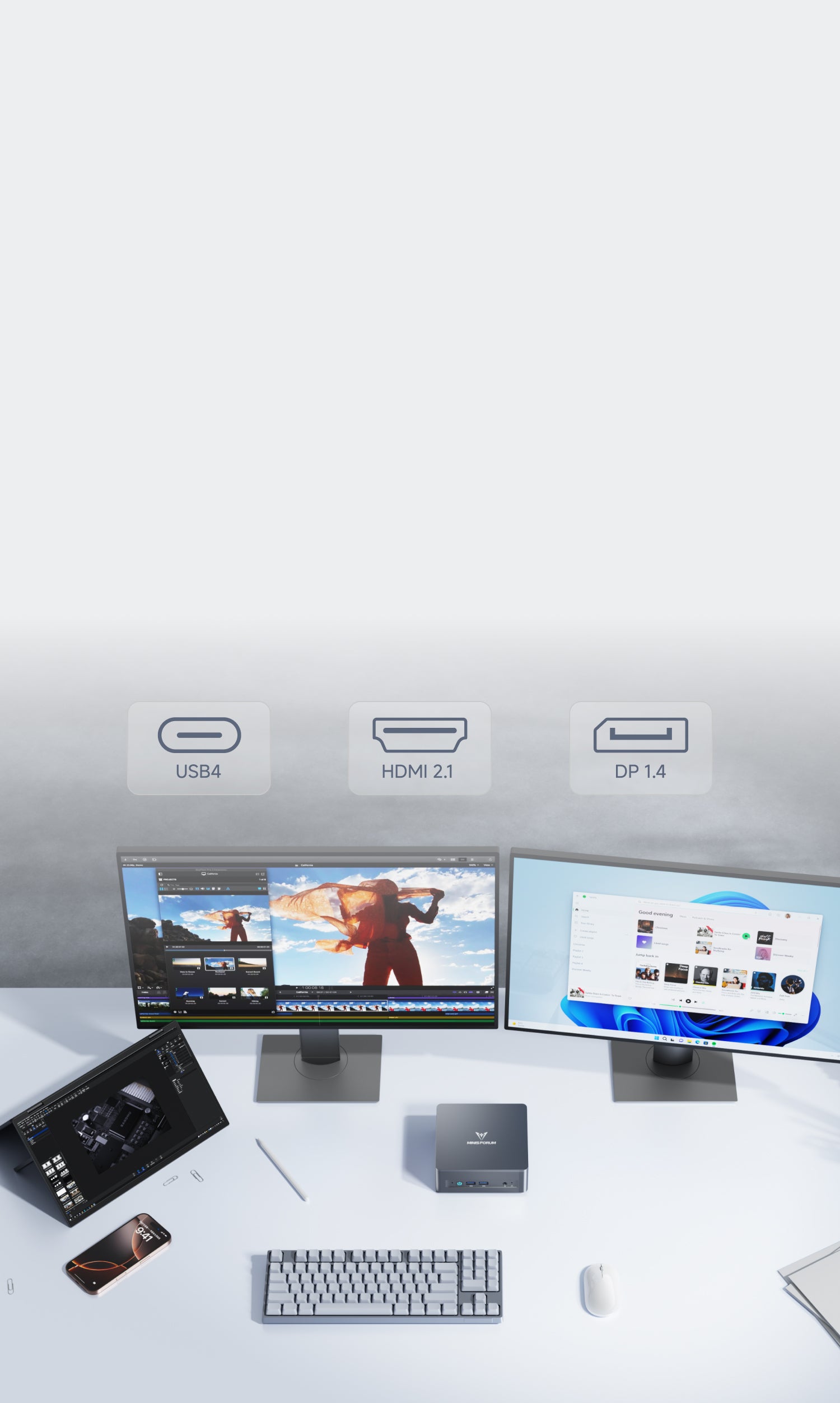 Full-featured USB4 ports deliver blazing 40Gbps speeds for effortless handling of large files, complex projects, and demanding applications - dramatically boosting productivity.