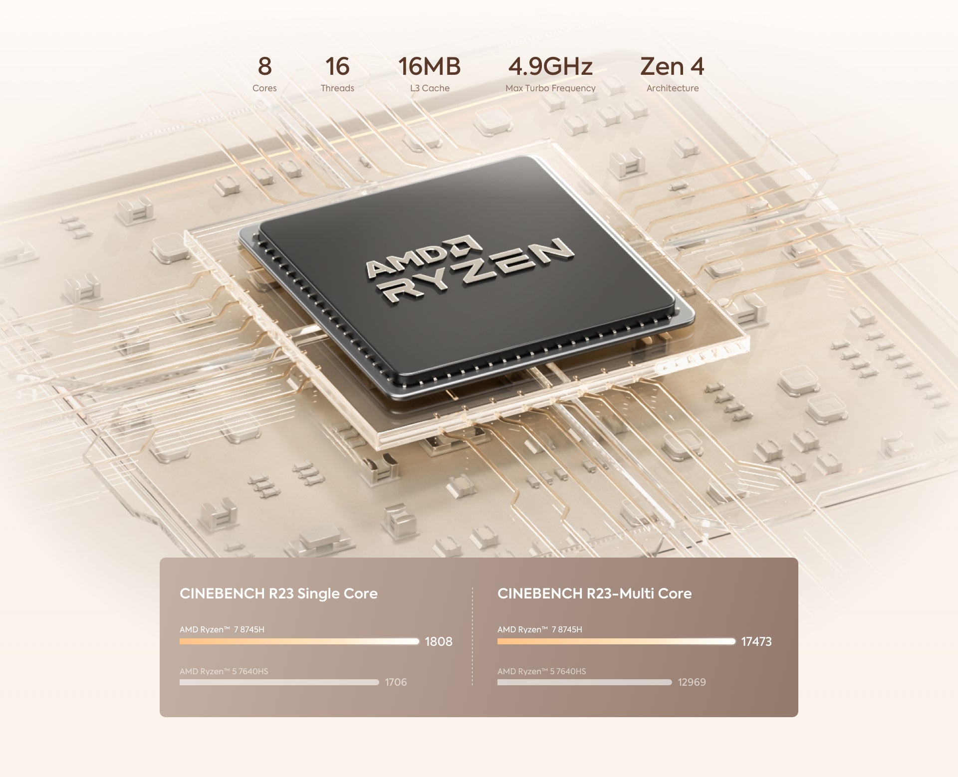 AMD Ryzen™ 7 8745H Processor, 8 Cores/16 Threads