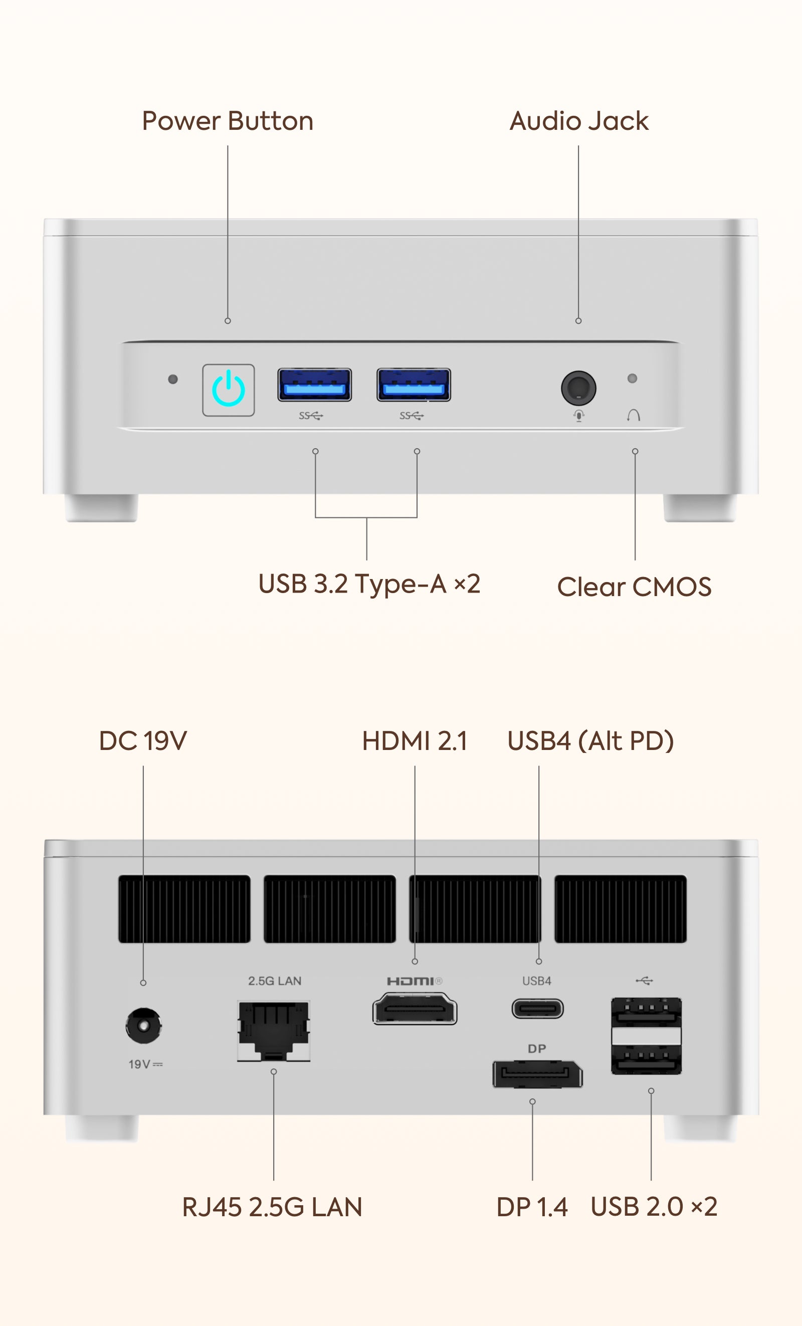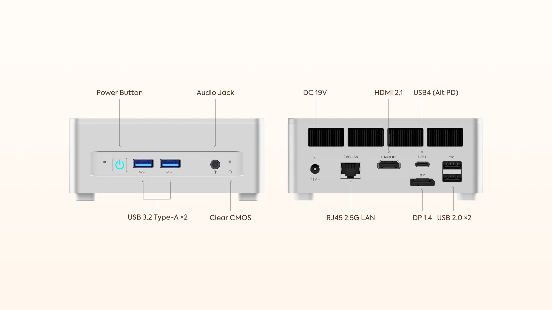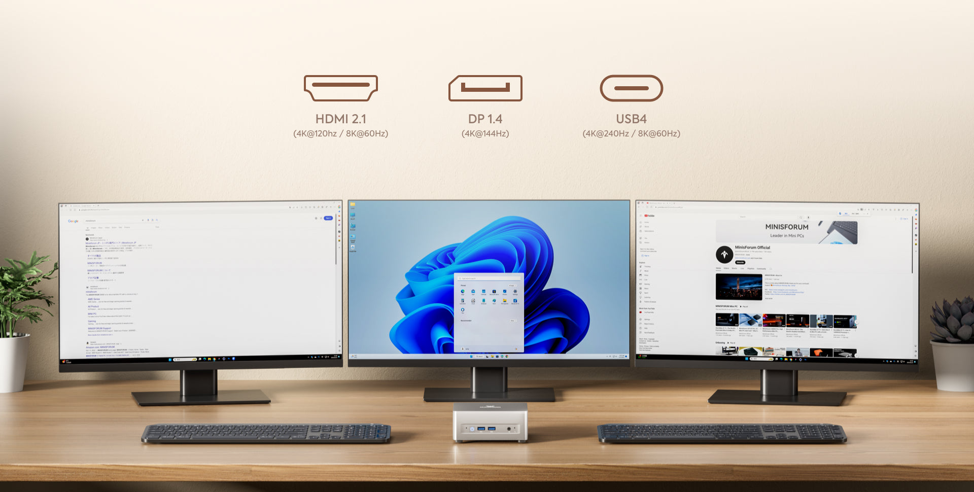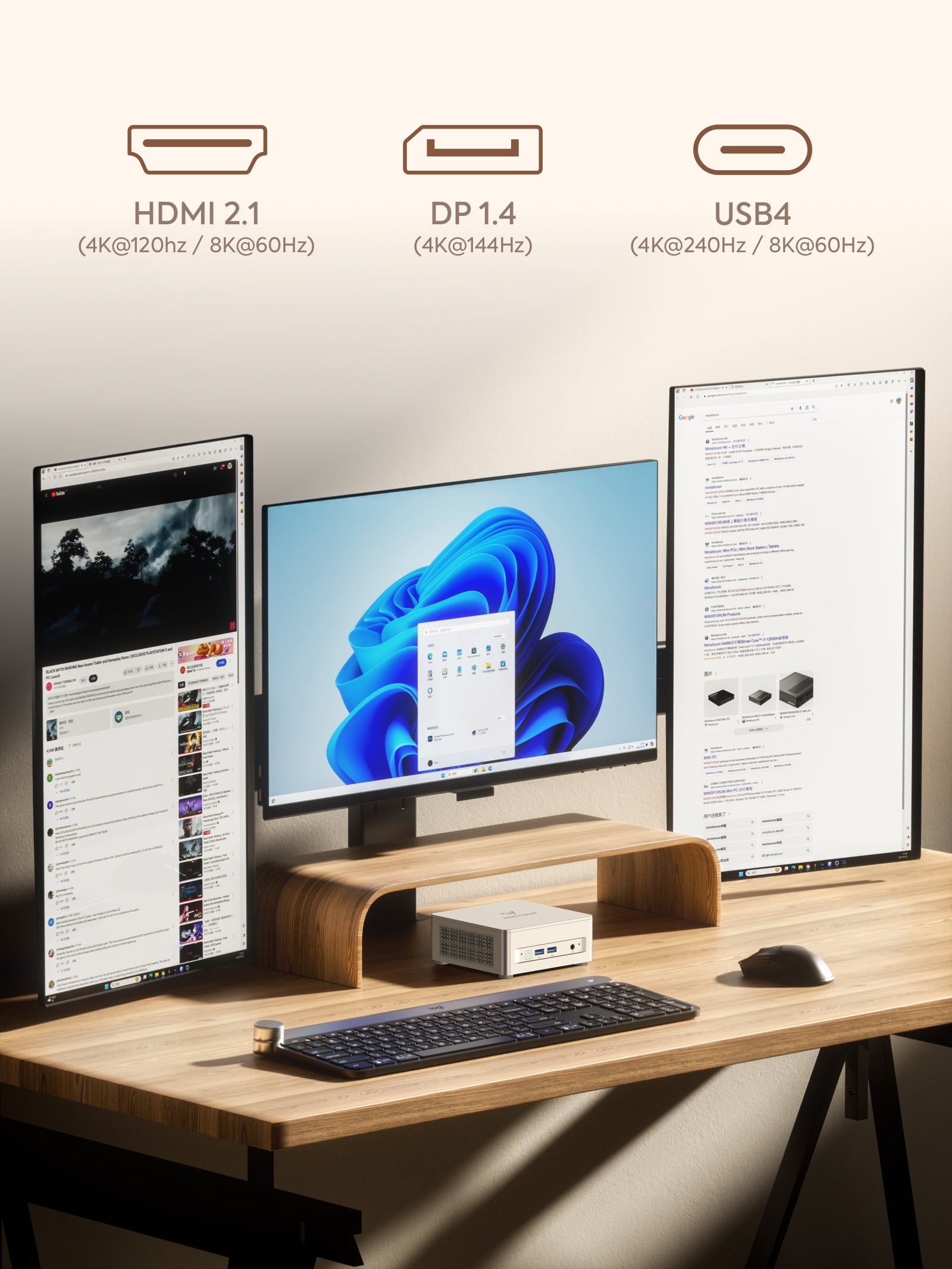 The UM870 Slim empowers seamless multitasking with its high-speed USB4 ports, HDMI 2.1, and DP 1.4 connections.