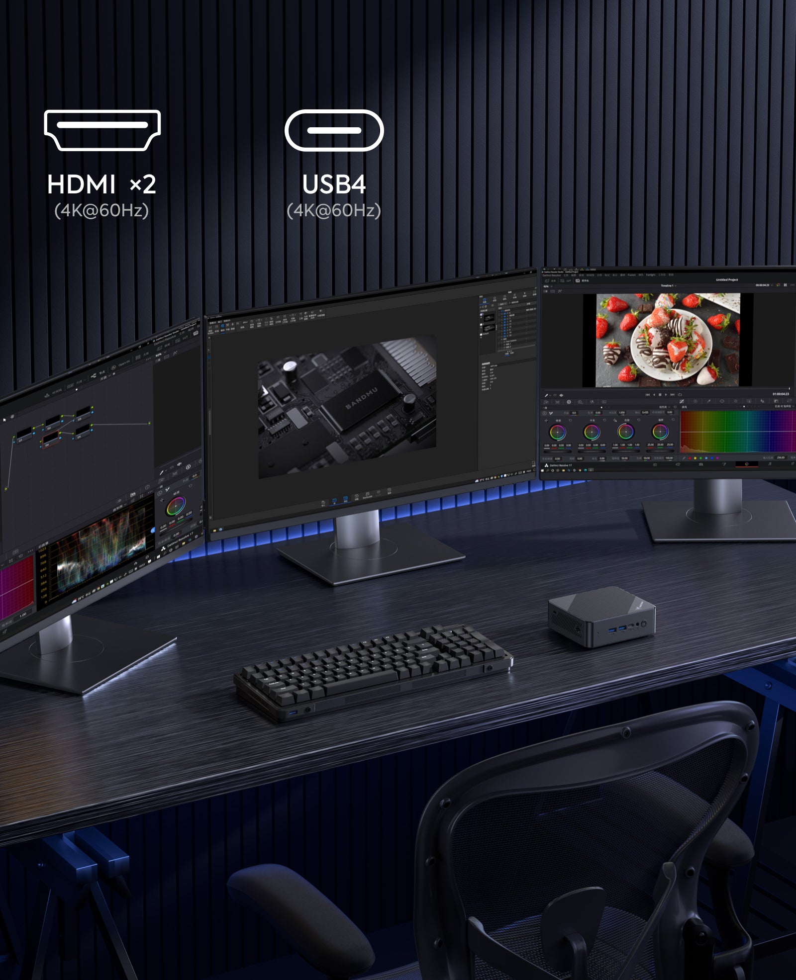 The UN100P enhances multitasking capabilities with dual HDMI 2.1 ports and a Type-C port, allowing you to effortlessly connect up to three 4K displays. Supercharge your workflow and boost efficiency with seamless, high-resolution visuals.