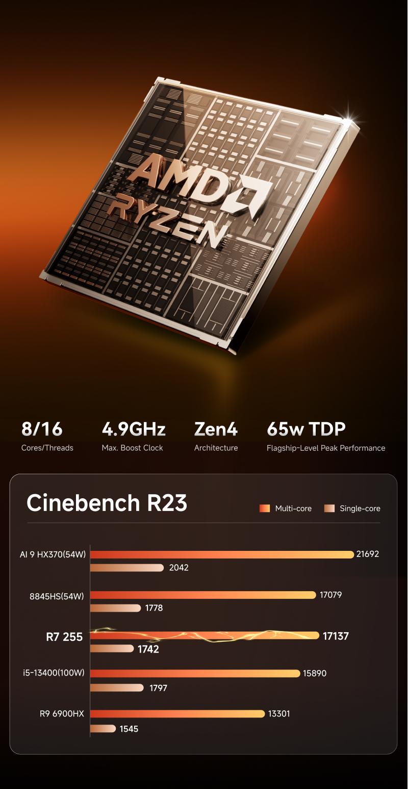Phase-change material ensures stable 65W TDP performance and quiet operation under heavy load.