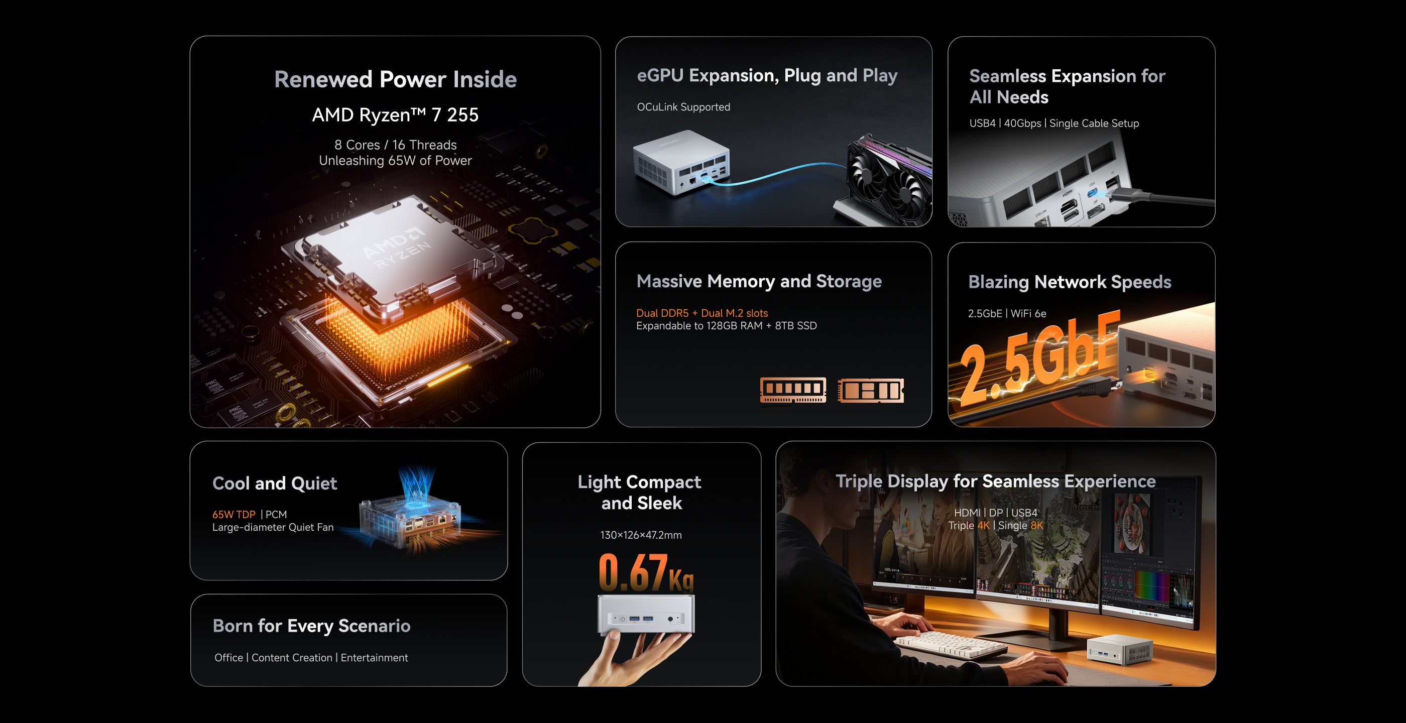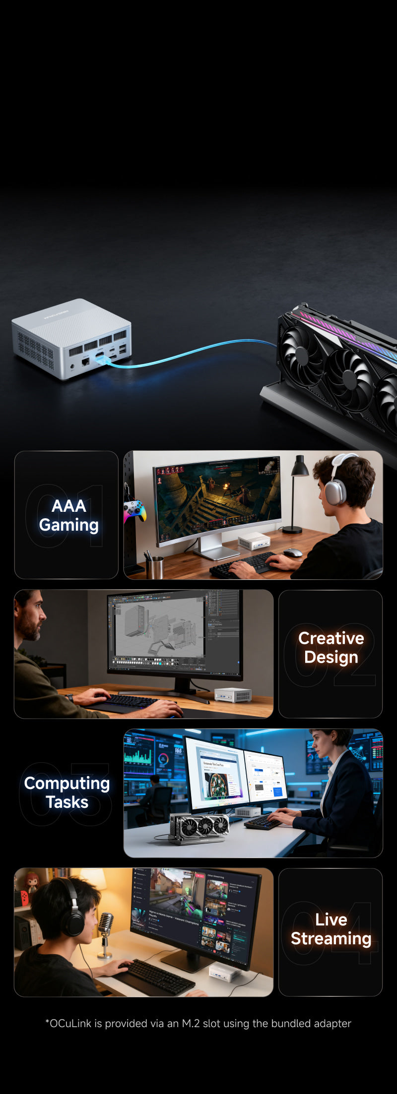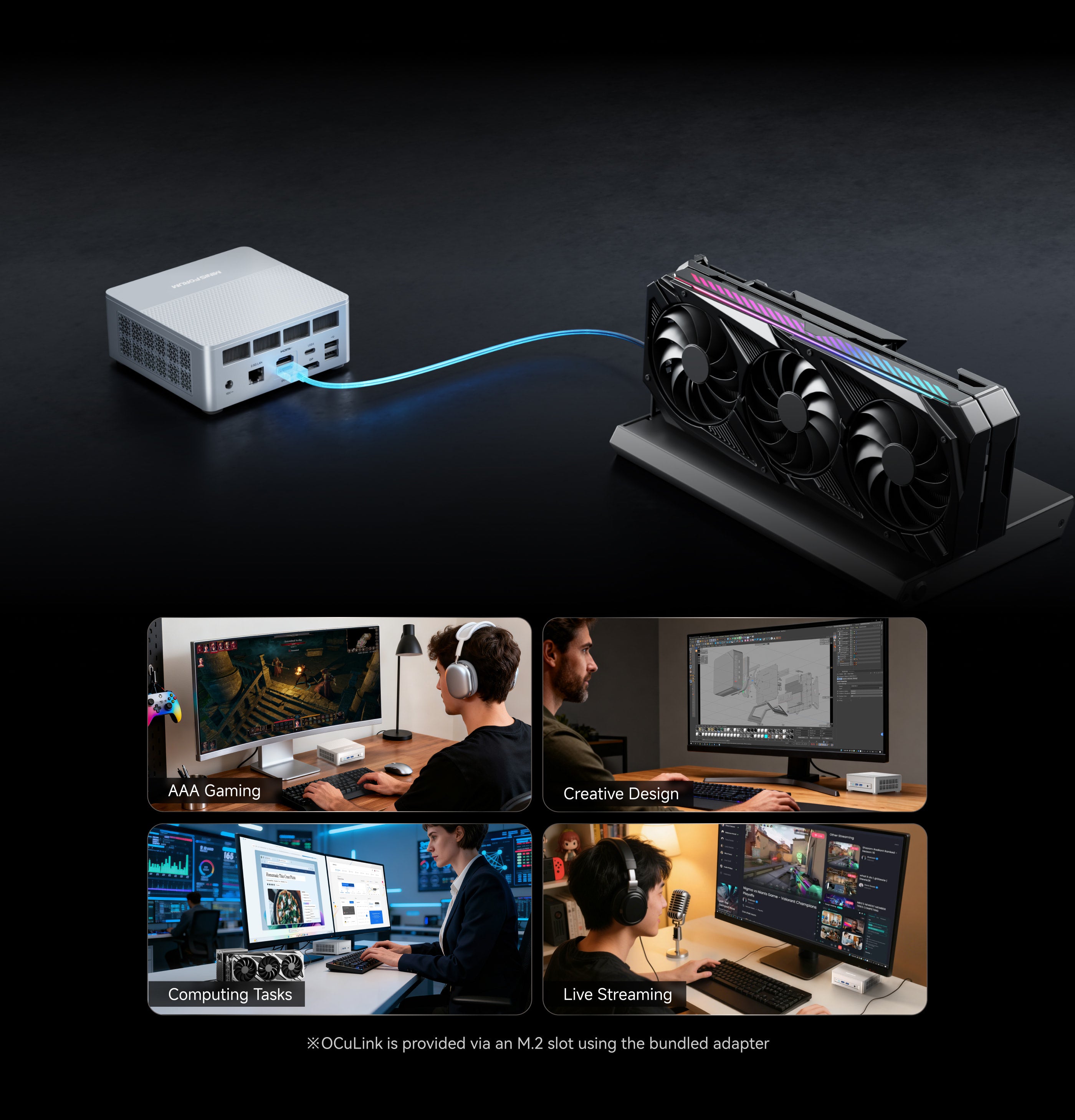 - Oculink | USB4 40Gbps | Single Cable Setup