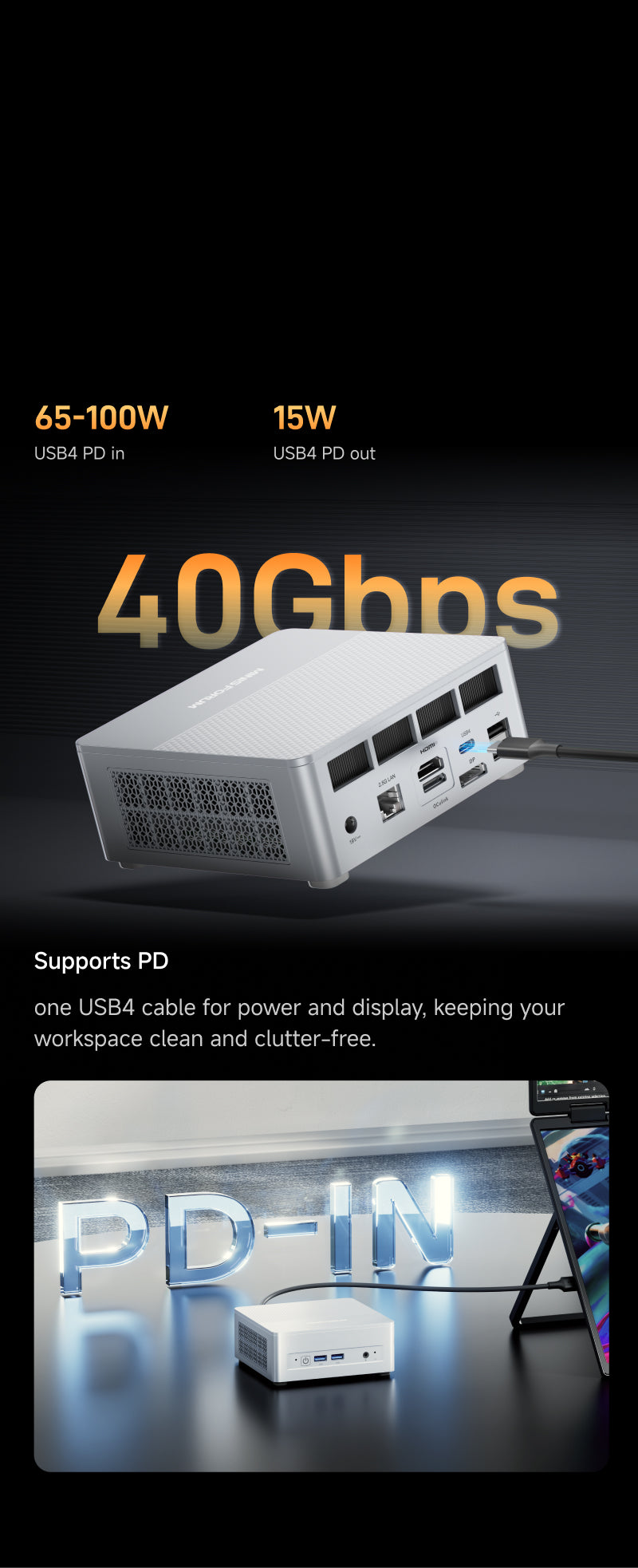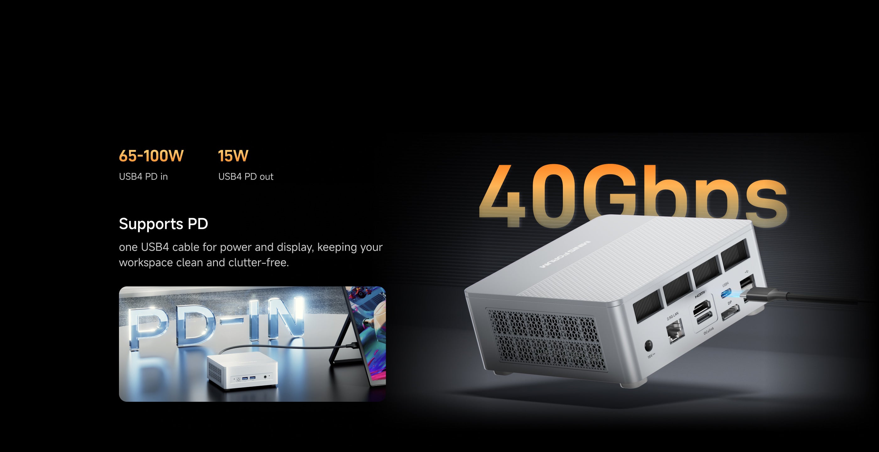 - Type C_USB4 x1 (40Gbps+Alt DP+PD IN 65-100W+PD OUT 15W)