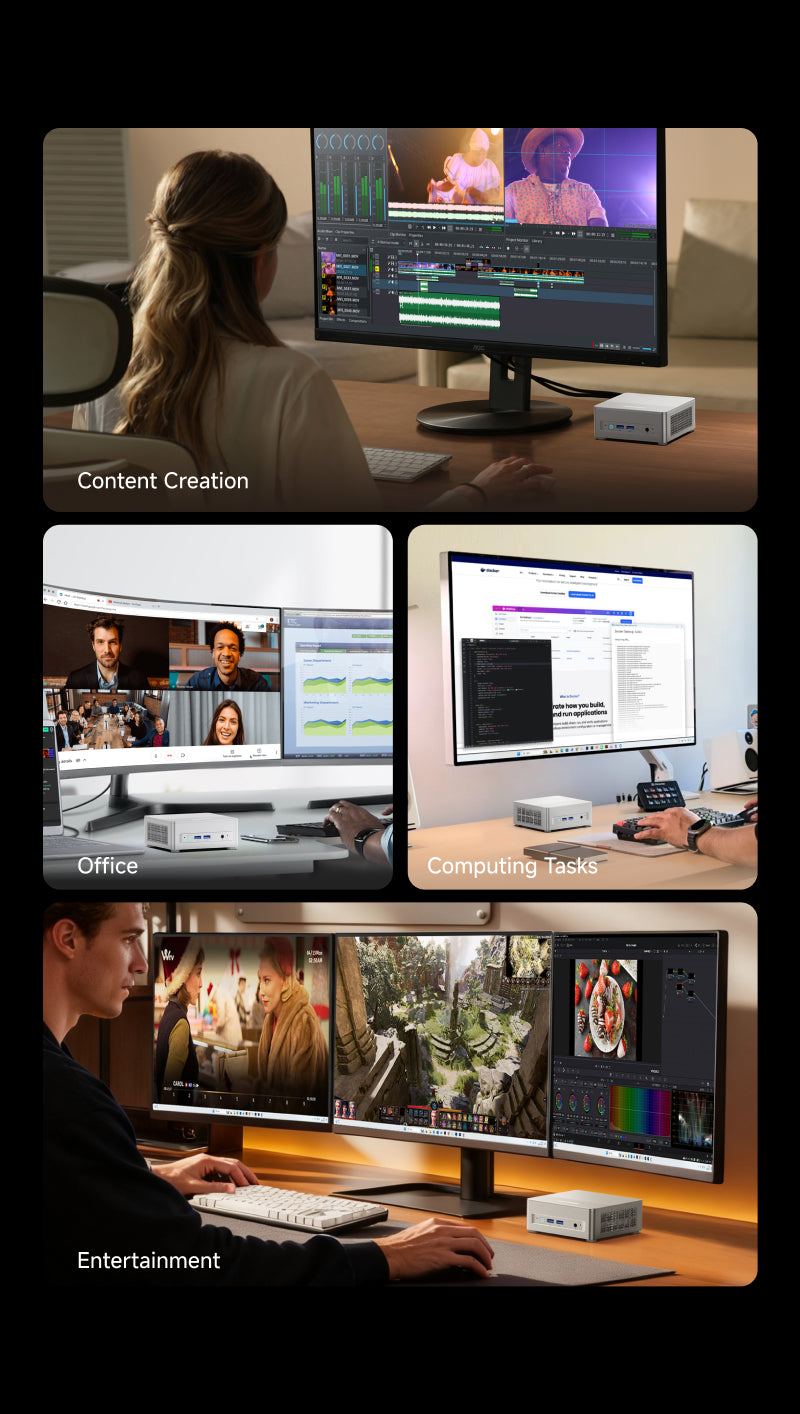 Mount behind the monitor, under the desk, or on the wall for flexible space usage